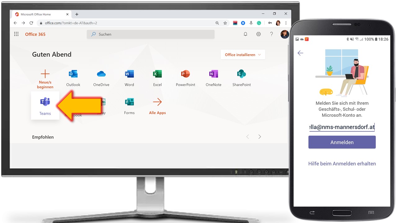 – im PlayStore oder AppleStore nach der App „Teams“ suchen