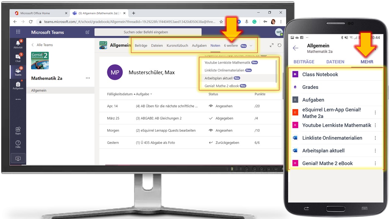 - Lehrer haben die Möglichkeit weitere Registerkarten (Apps) zu ergänzen.