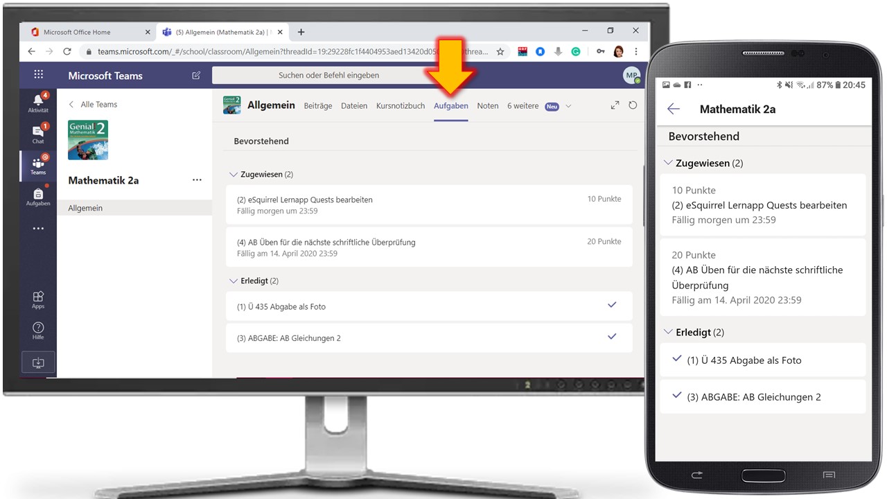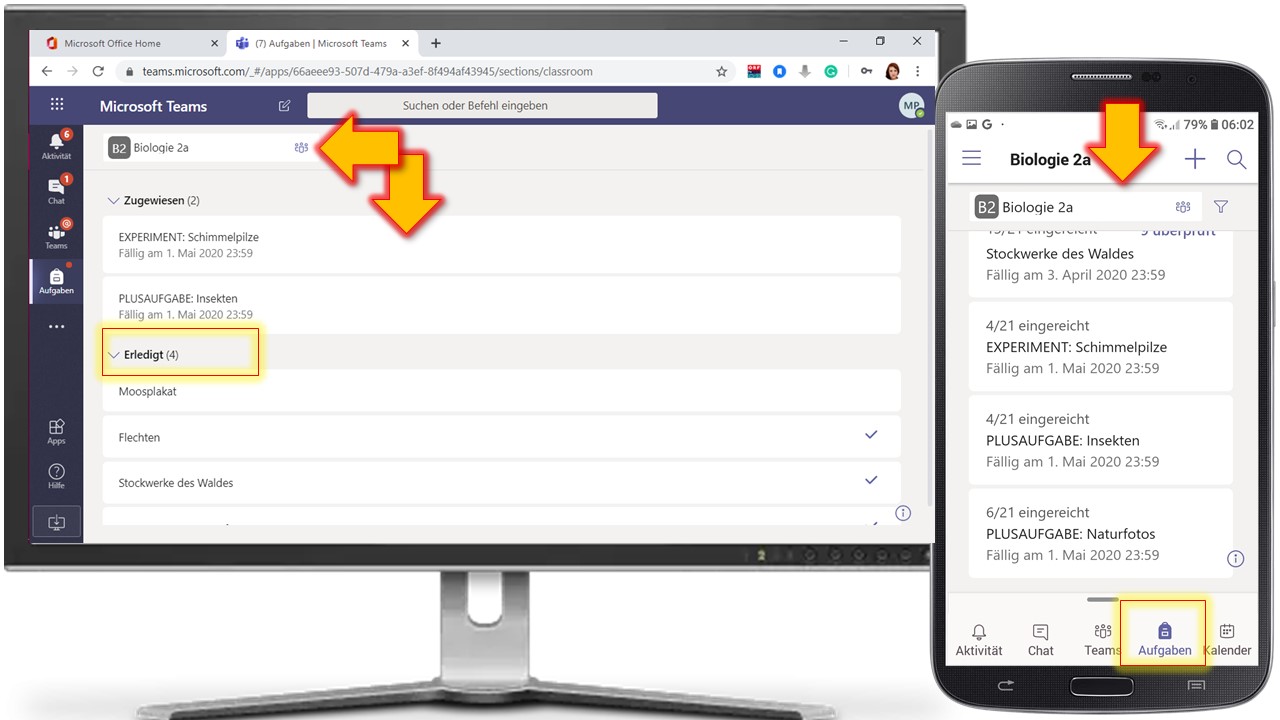 - Eine richtig schöne Übersicht über alle Aufgaben eines Schülers gibt es in Teams leider nicht.