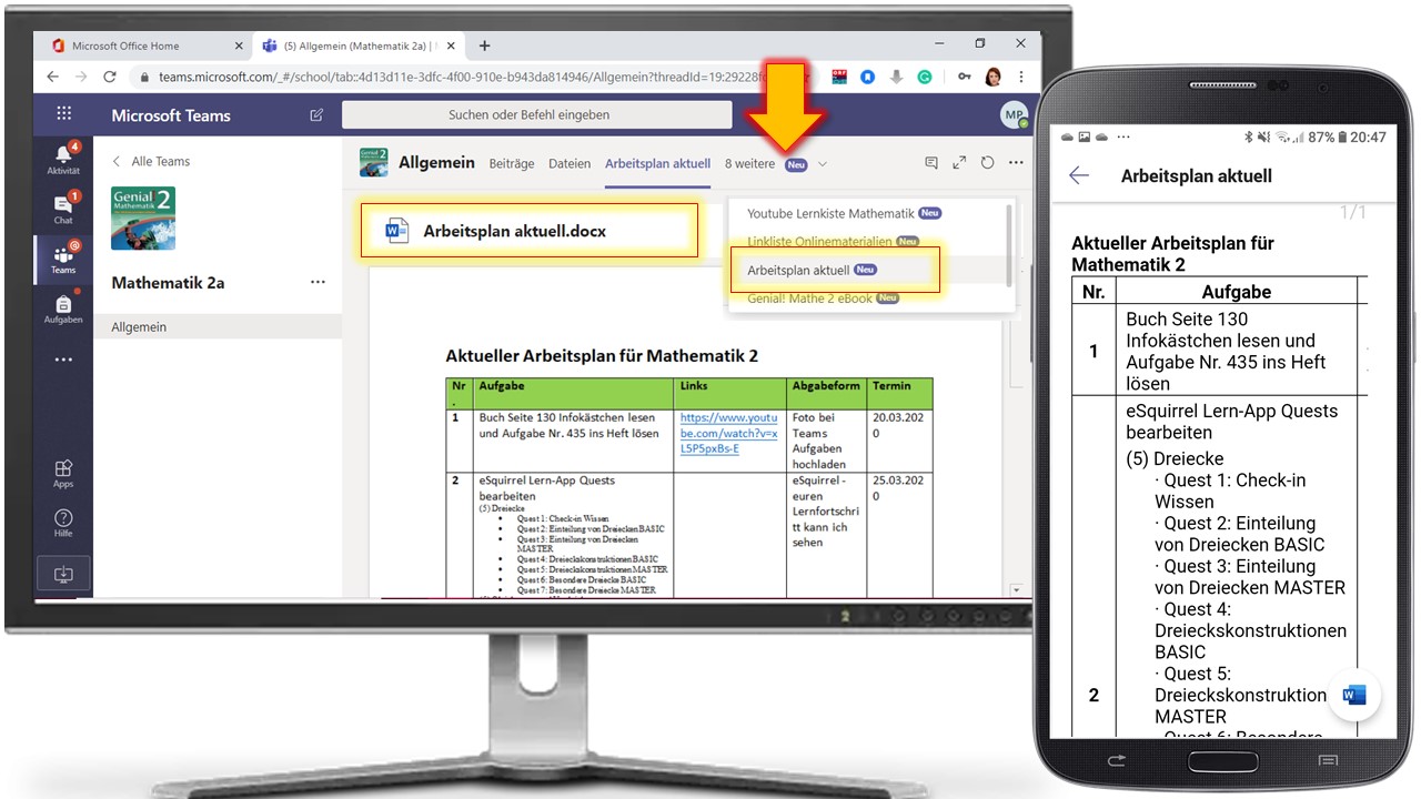 - Hier wurde z.B. ein Word-Dokument geteilt, indem die Lehrerin einen übersichtlichen Arbeitsplan abgetippt hat.