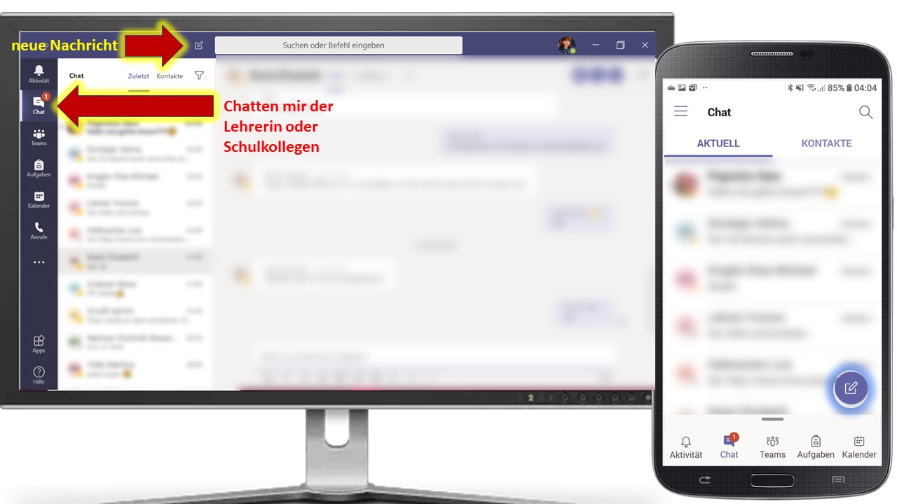 - Wenn du Fragen an Lehrerinnen hast oder gemeinsam mit anderen Lernen willst, kannst du den Chat verwenden.