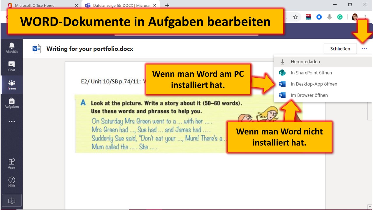 TEAMS: WORD-DATEIEN IN AUFGABEN BEARBEITEN
