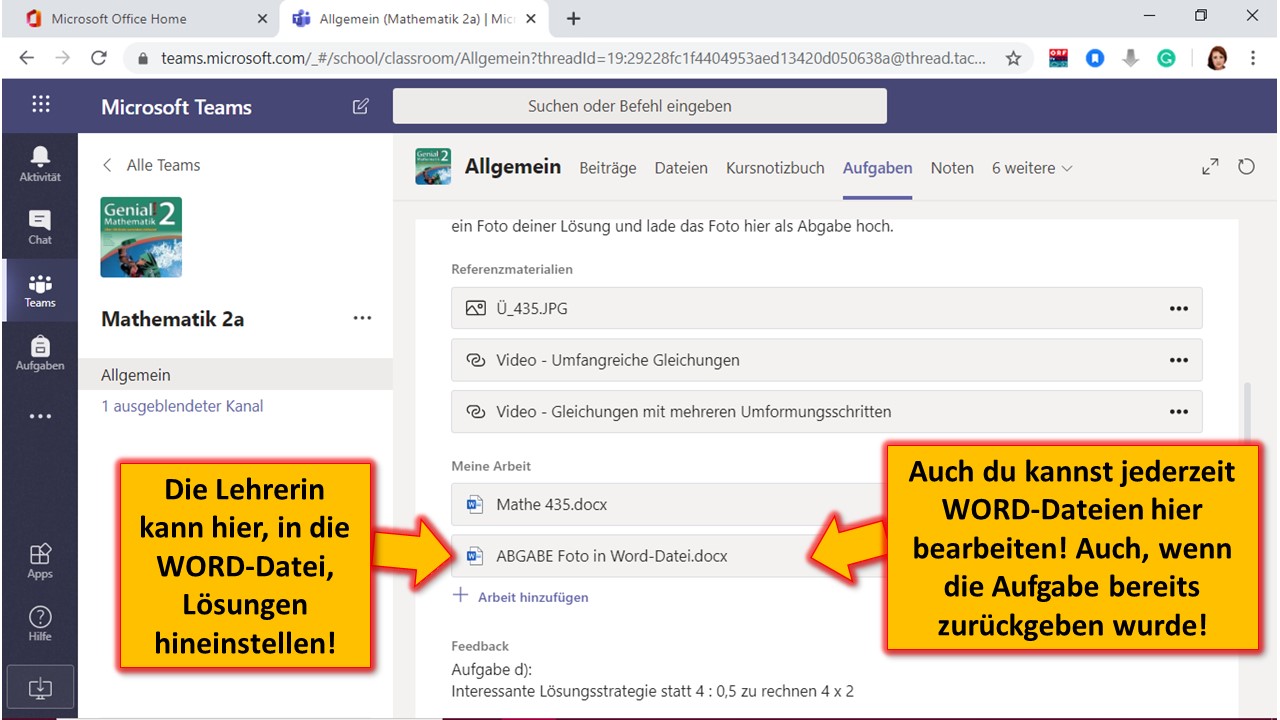- Wenn dir deine Lehrerin zu einer Aufgabe eine WORD-Datum:i bereitgestellt hat, kannst du und auch die Lehrerin jederzeit diese Datum:i bearbeiten. Jederzeit heißt, dass du auch nach dem Zurückgeben dort arbeiten kannst.